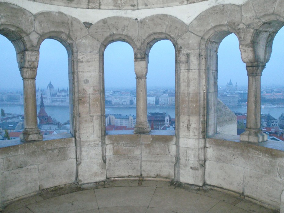From a colonnade behind the St. Mathias Church in Buda, this is the view on a foggy afternoon back across the Danube, toward Pest.
