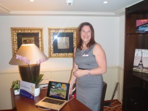 The crew of 40 was exceptional. Most were eastern European, and they were unfailingly cheerful and helpful despite the fact that it was the end of a very long season and they were all anxious to get home. The Cruise Director that held all of this together was Kriss Stallabrass, a Canadian now living in Holland. Kriss was somehow equal parts tour guide, historian, Elvis impersonator, camera mechanic, psychiatrist, raconteur, excursion coordinator and a dozen other things. She may not be a doctor but she knows one in every port. Her job, she said, was to “be a mind reader and try to anticipate what will make everyone happy. You can never forget that for every person on board, this is the trip of a lifetime.”