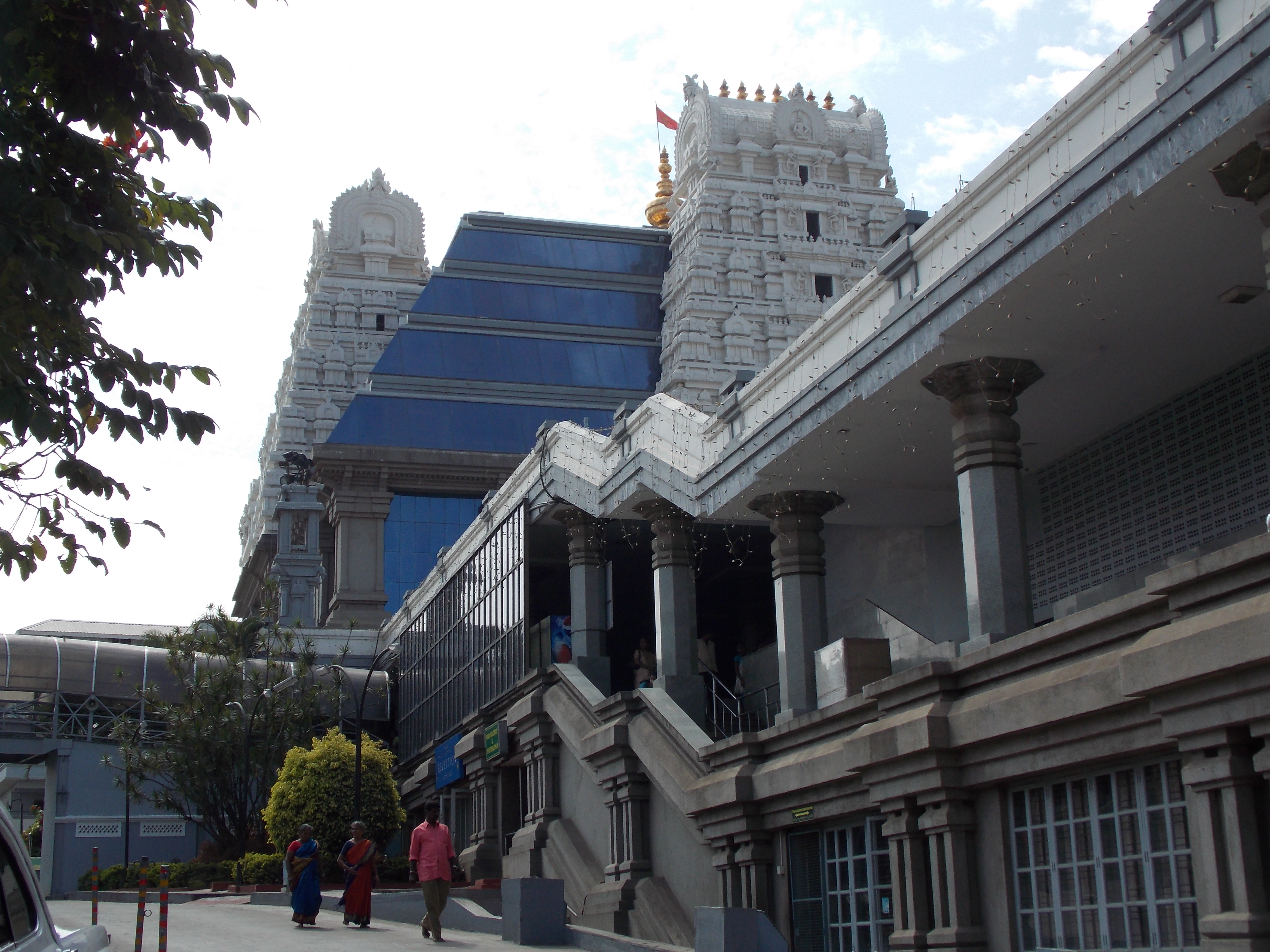 I spent my day in Bangalore in the company of RK’s nephew Phani, a very pleasant young man who thinks Pierce Brosnan is the best James Bond ever but understands why old people like me prefer Sean Connery. Our first stop of the day was the best: ISKCON, the International Society of Krishna Consciousness. I wish I had good photos from the interior but I had to check my camera, along with my shoes.
