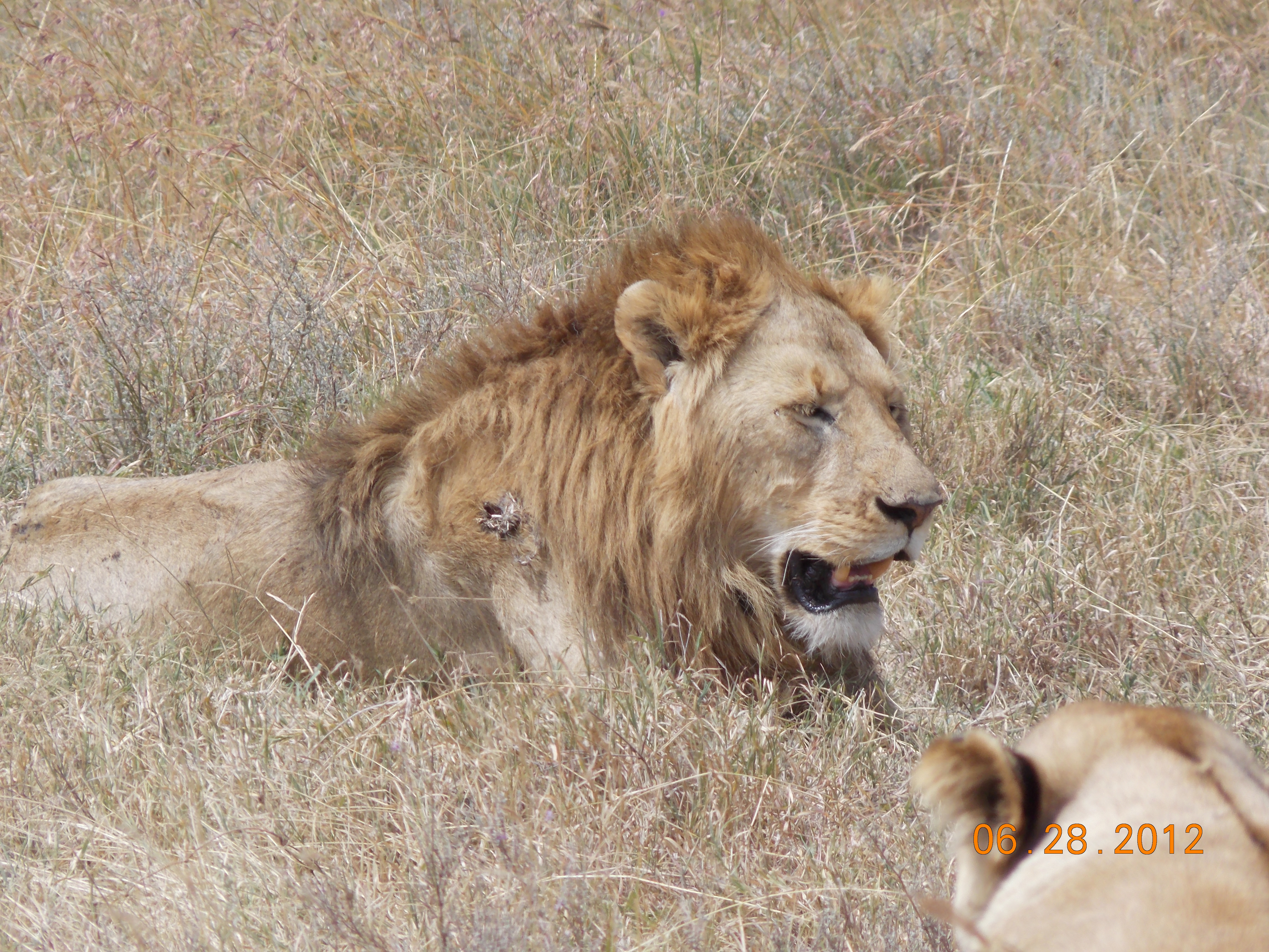 Anyway, the four of us were safari-ed out and half asleep when Joseph, our guide and driver, spotted some lions by a watering hole just off the road; the other Serengeti Pride vehicle with five more of our gang was already there. A male and female were ambling about a watering hole and four more females (the male looked very tired) were overlooking the scene from a hill above. One of the lionesses moved before I could get the shot I wanted, which would have been very Mount Rushmore-like, but it was still an unexpected way to finish off our five days looking for animals. But that’s the way it goes on safari, you have to be lucky and find yourself in the right place at the right time.