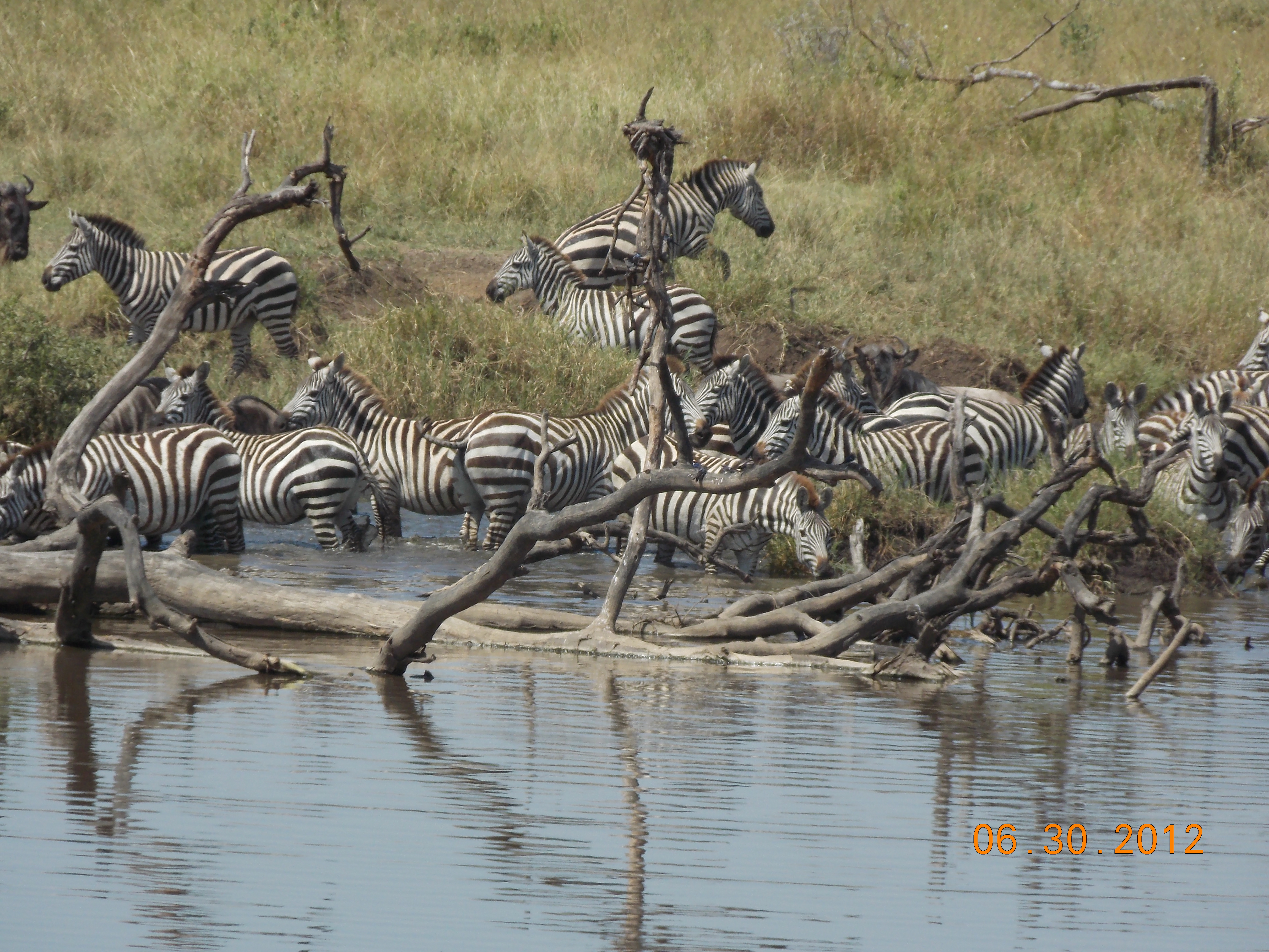 Our itinerary took us to three very different locations: Lake Manyara National Park, the Ngorongoro Crater, and Serengeti National Park. We visited Lake Manyara the first afternoon; the area around the lake is heavily wooded and home to a wide assortment of birds and animals. You see baboons everywhere, often screeching and fighting in some kind of turf battle, always a lot of fun. ImageThe safari vehicles have a roof that rises up so you can stand and take pictures, and apparently the day we were there a baboon jumped into one of the vehicles and onto the lap of a young kid. The animal removed the kid’s glasses, determined they weren’t edible, grabbed a bag of chips and took off. That kid’s going to have a pretty good “what I did on my summer vacation” story when he gets back to school!