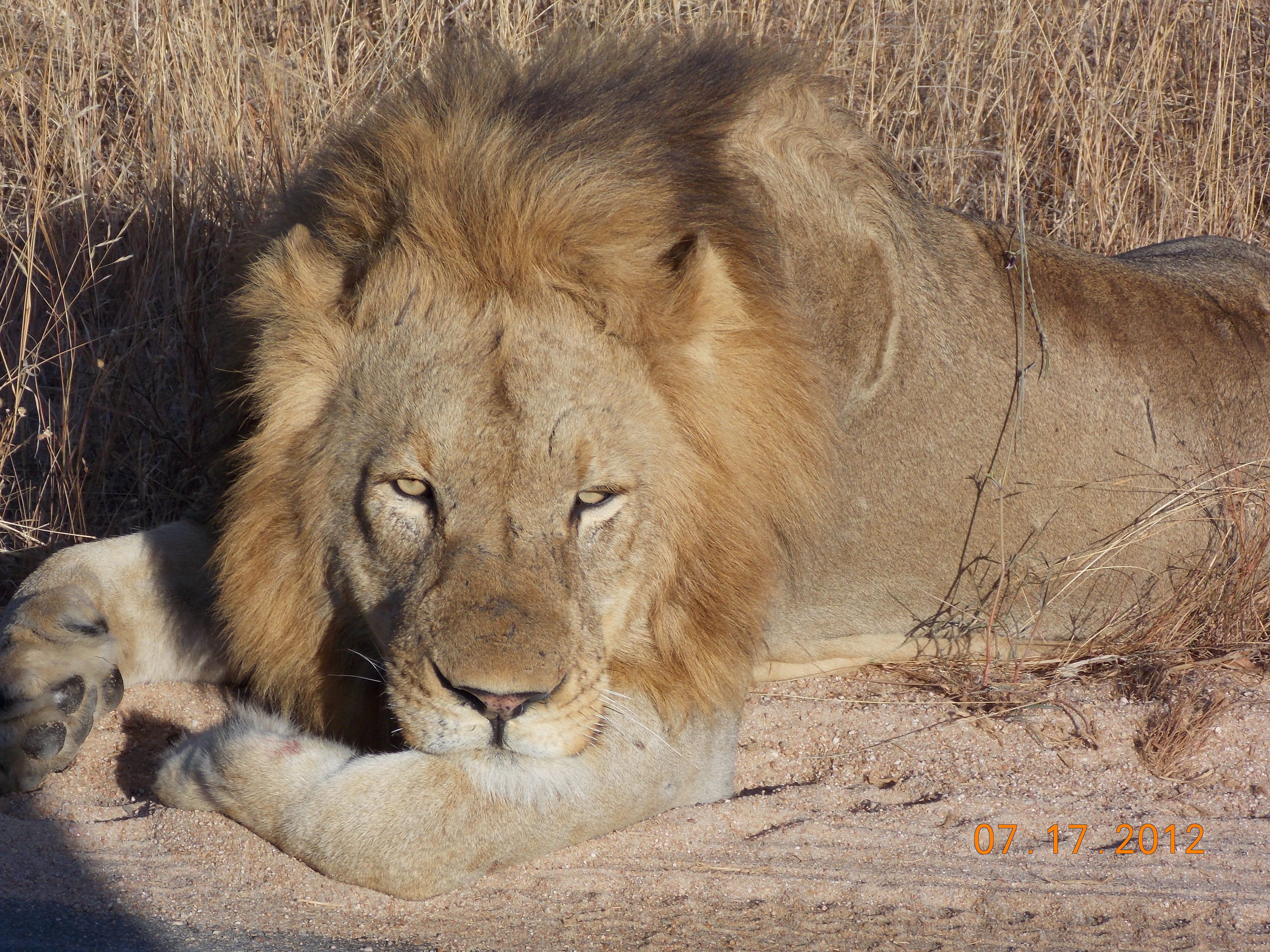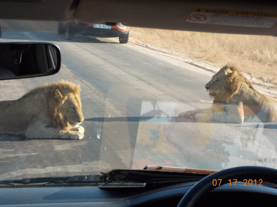 We spent the next full day in Kruger, and the highlight was coming across three young male lions, just lying in the street. In Tanzania I’d seen lions up close, but all females. Of course an armada of vehicles was there as soon as word spread, jockeying for position, but we got a great look and some good pictures.