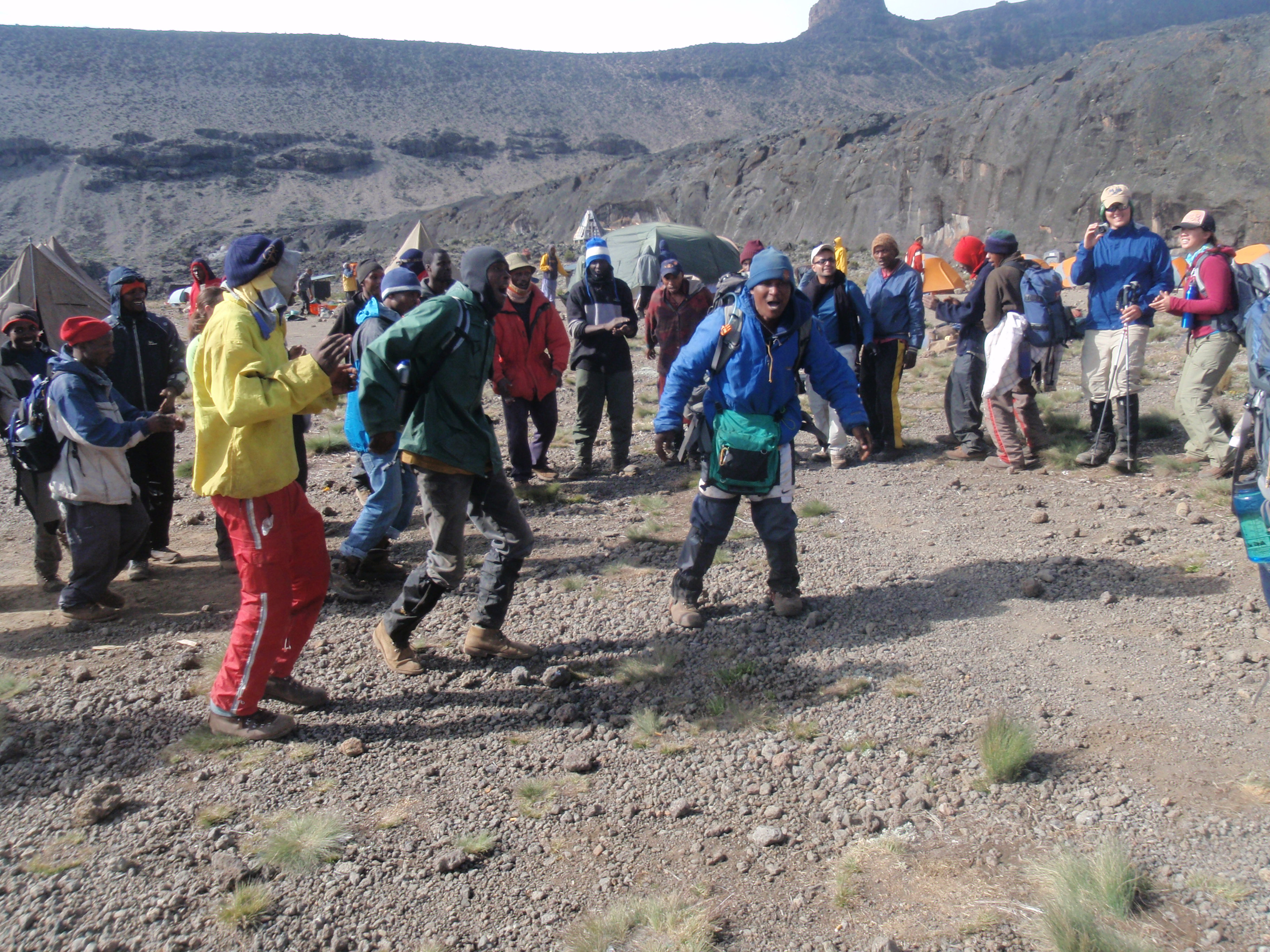 In the first post I mentioned the porters and guides and their amazing work, but I didn’t get into all the little things they do on a daily basis in support of the climbers. They were ever encouraging, greeting us as we walked into camp each day with high fives, singing their songs, saying “jambo, karibu” (hello, welcome), always smiling, always positive about what you had done that day. ImageOur leader Lema Peter’s cousin Emanual (“Ema”), who had the critical job of being in charge of water, was certainly the most vocal and outgoing (“loudest one in the family” said Lema), and was constantly coming up to you with a huge smile: “Gooda job, Babu, gooda job!” He was wonderful.