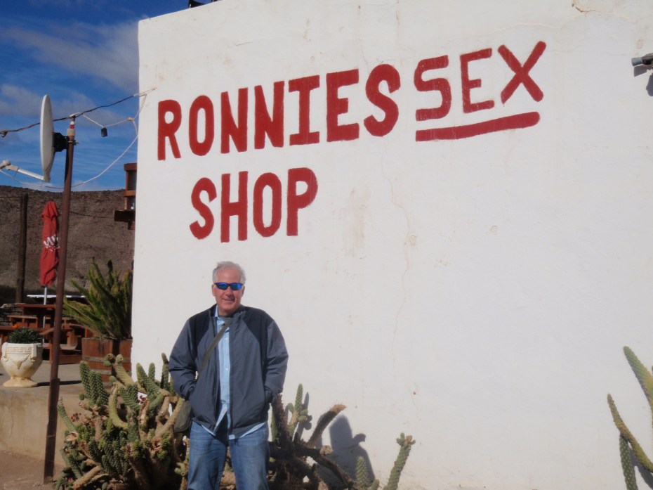 We stopped for a bite at Ronnie’s Sex Shop. For years it was just Ronnie’s Shop and it struggled for business, but a truck driver with a bucket of red paint and a knack for marketing added “sex” to the name and now Ronnie is doing a booming business, including t-shirts, hats and other merchandise. Judging from the women’s underwear hanging from the bar ceiling, when the bikers show up on the weekends things get fairly interesting.