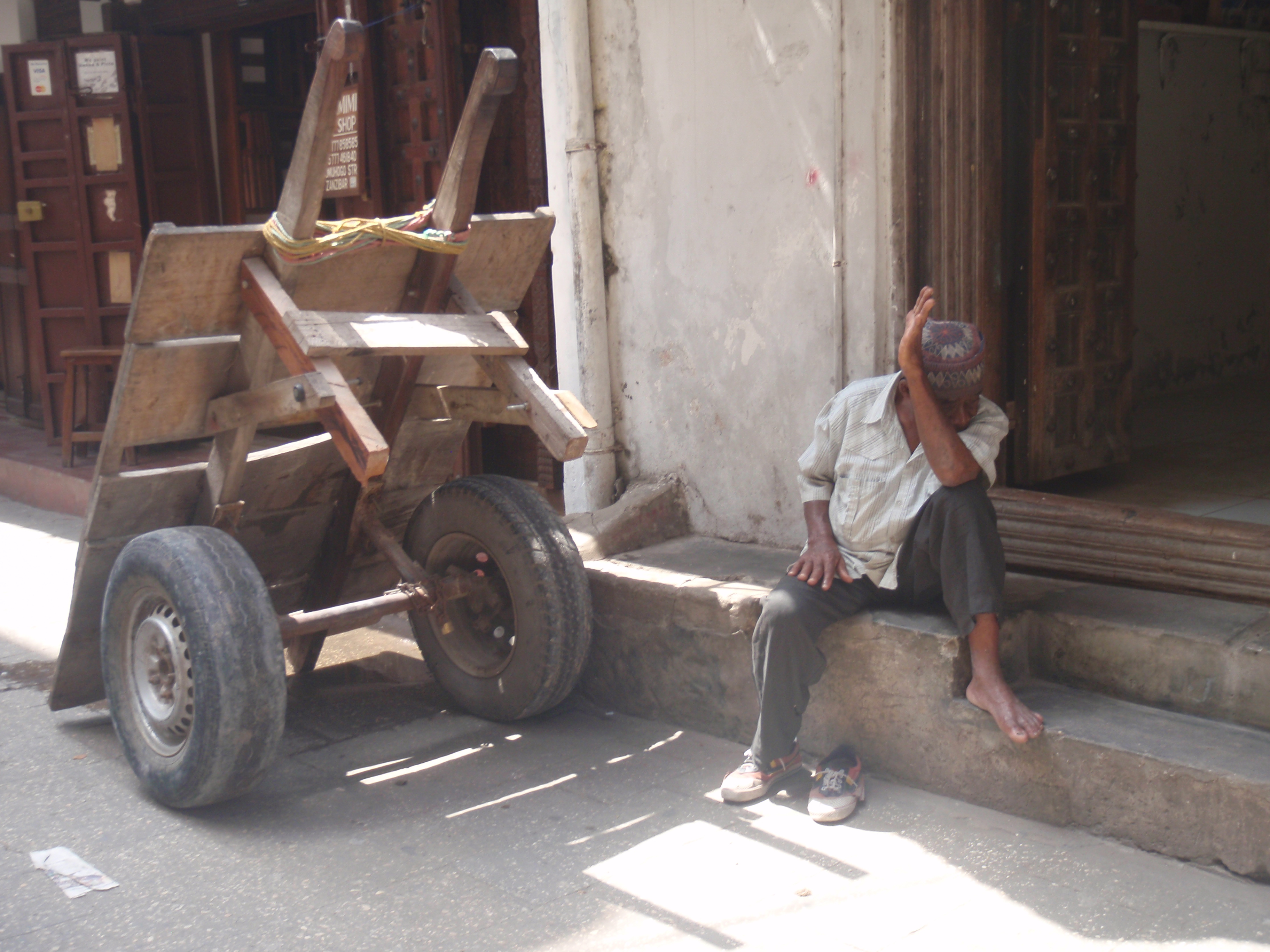 You keep your head on a swivel in Zanzibar. If there are any regulations regarding traffic in this labyrinth of alleyways, they are unenforced. There is no way motorbikes should be allowed in the narrow streets but they are, and they come at you from all directions, as do donkey carts and push carts and bicycles laden with enormous piles of wood. An extremely old man struggled pushing a bicycle with three huge sacks of goods somehow attached. As he turned a corner he stalled going up a slight incline, and I walked over to give him a push. He brushed me away icily, executed a three-point U-turn, and slowly disappeared back down the street he had just made a monumental effort to traverse.